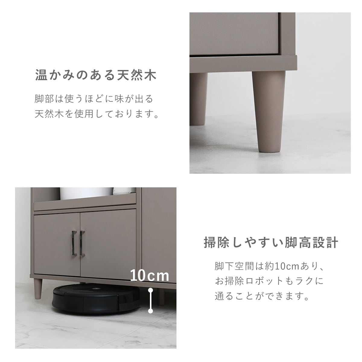 主材:[本体]プリント紙化粧繊維板 [天板、スライド棚]合成樹脂化粧繊維板 [脚部]天然木(ラッカー塗装)