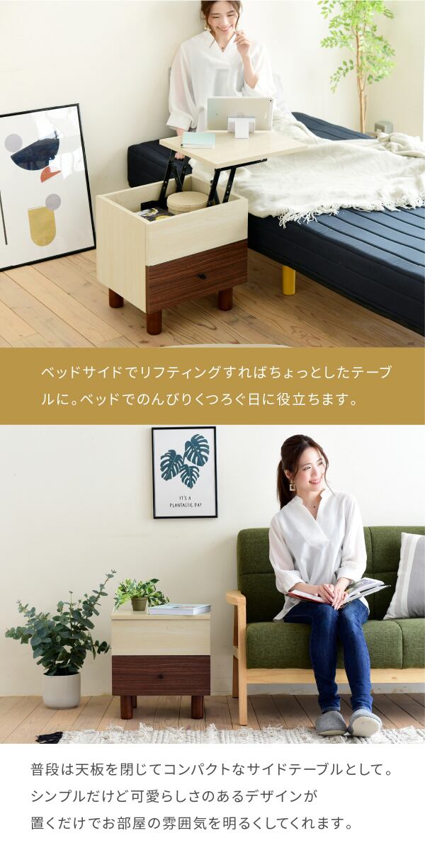 リフティングテーブル お洒落 かわいい 収納付き スリム ソファー 引き出し付き 低め