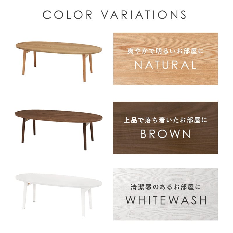 折れ脚テーブル 楕円形 ローテーブル センターテーブル リビングテーブル 天然木 幅95 3色展開