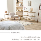 ナチュラルな部屋はもちろん、韓国風インテリアにも馴染むデザインのラタン調サイドテーブル。