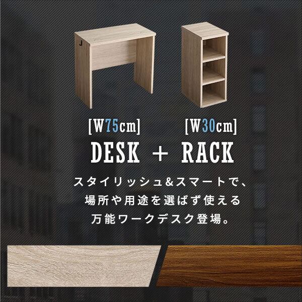 子どもから大人まで使えるリビングに合うヴィンテージシンプルデスクセット75cm幅、ラックは30cm幅!