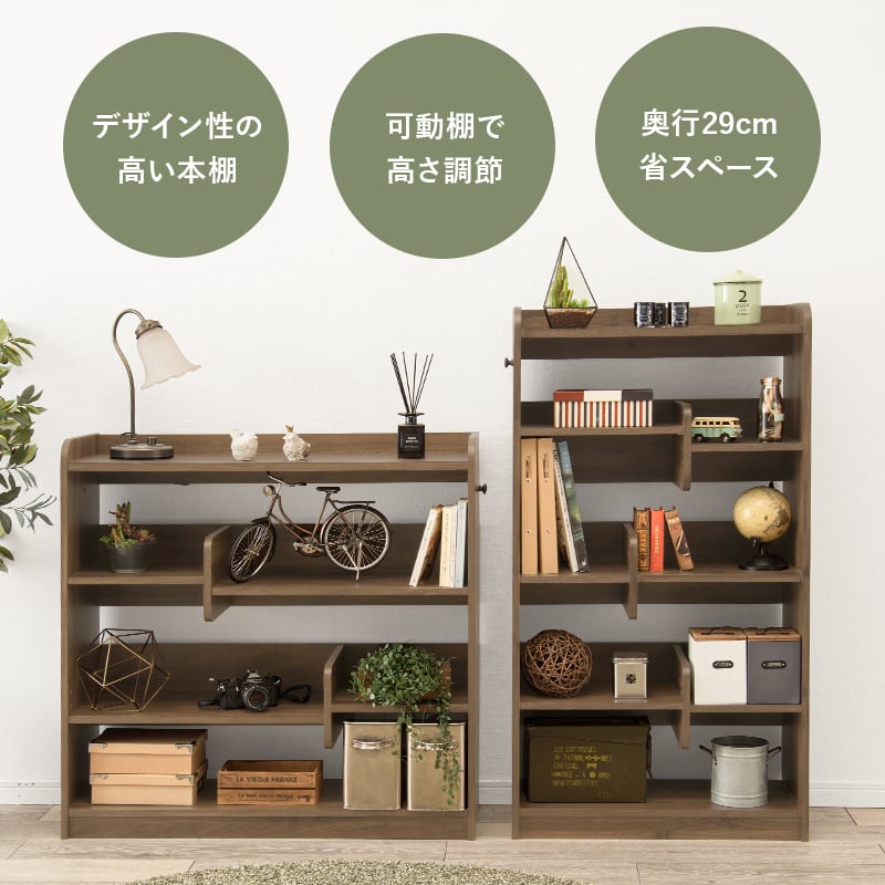 個性的なブックエンド付きでディスプレイもできるおしゃれな本棚。