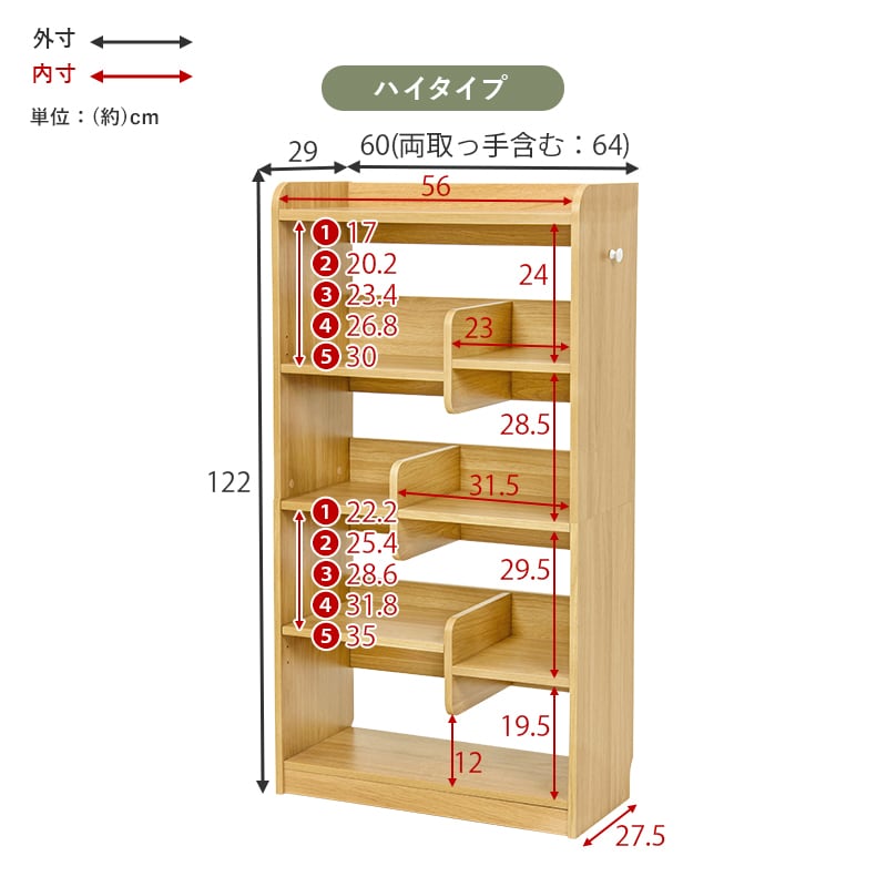 (約)幅60(両取っ手含む:64)×奥行29×高さ122cm
