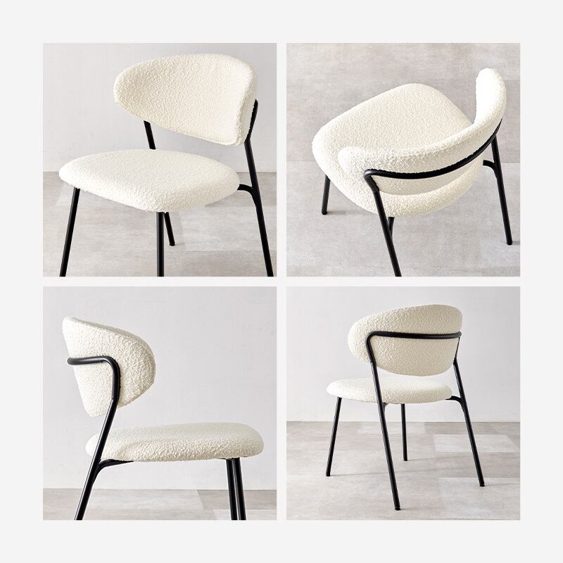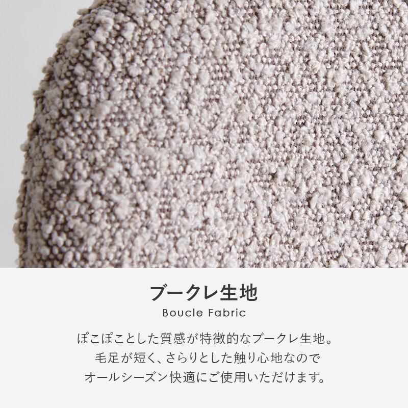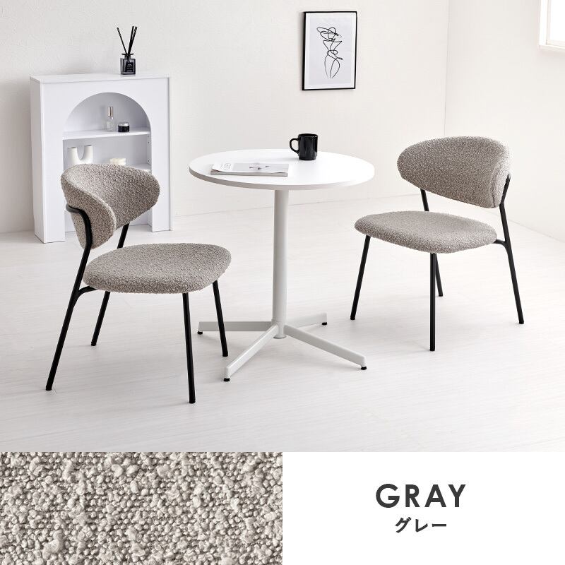 ぽこぽことした質感が特徴的なブークレ生地のチェアとホワイトカフェテーブル。