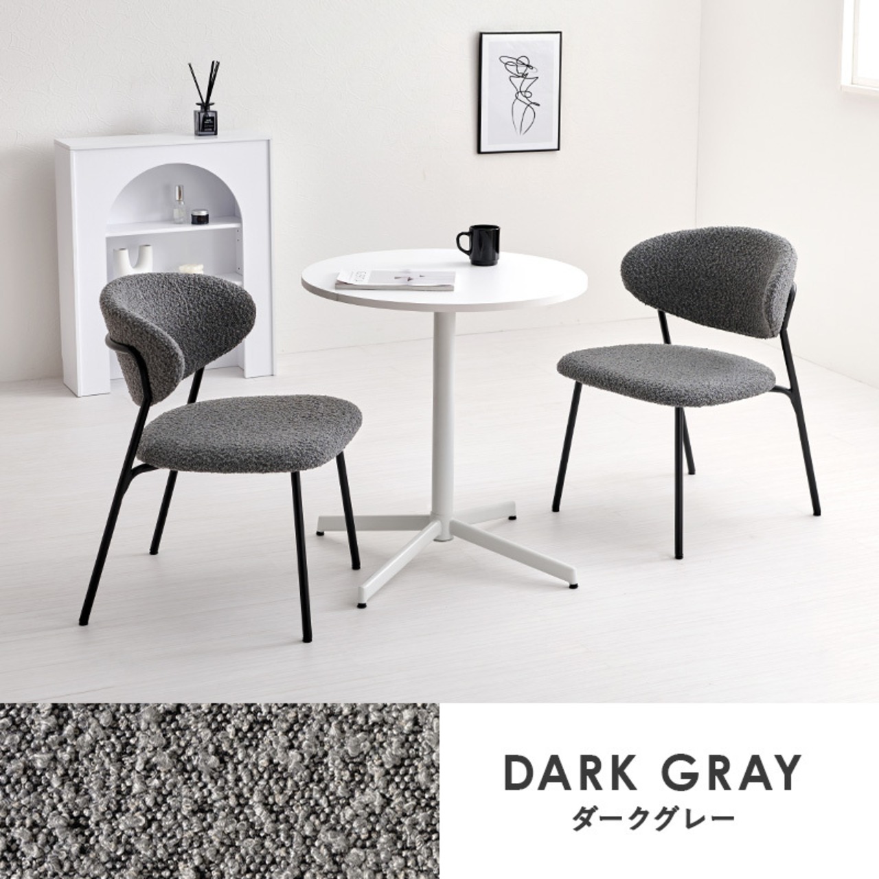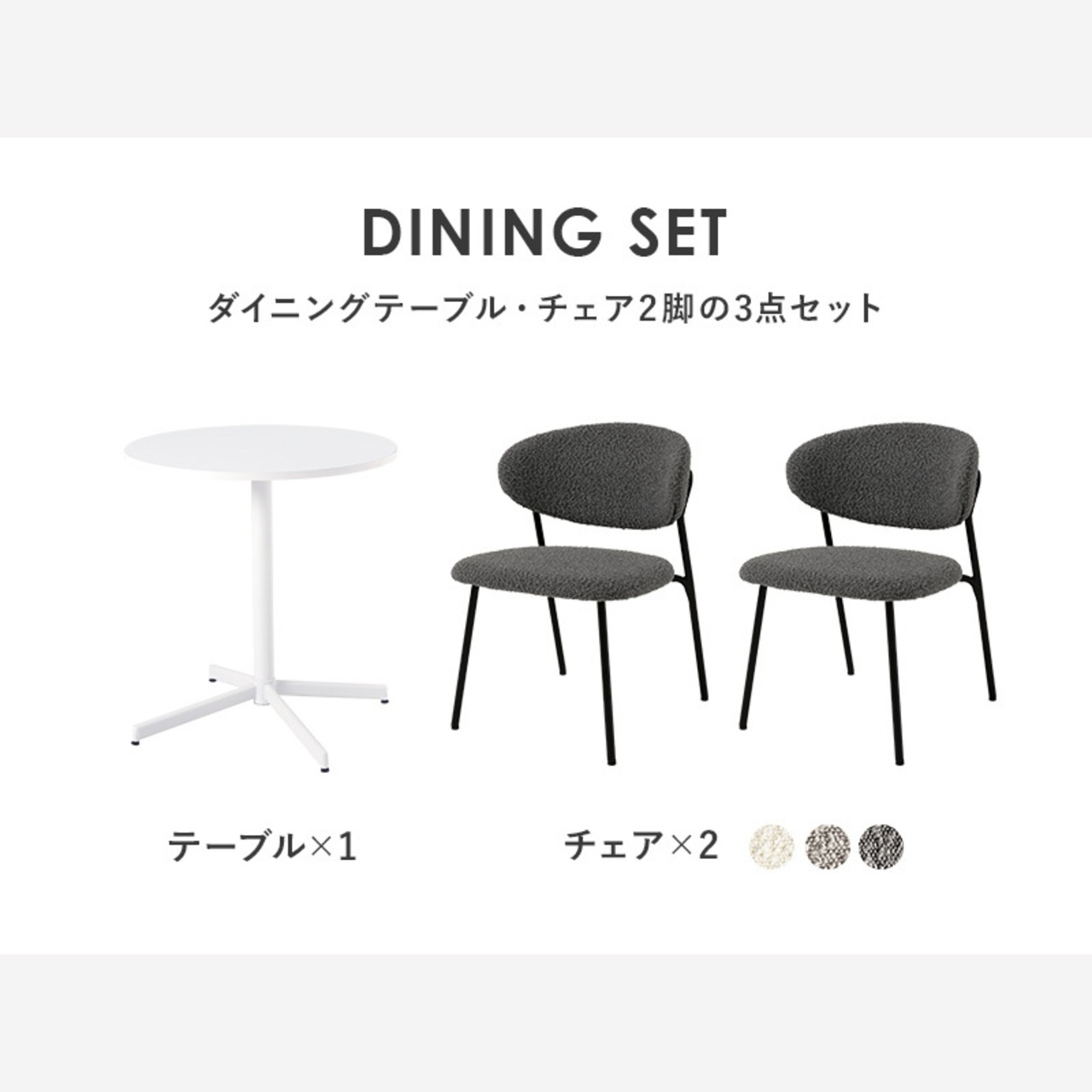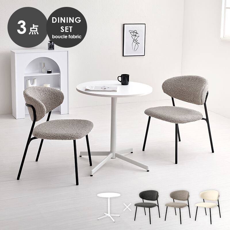 テーブル&チェア3点セット ダイニングセット カフェテーブル ダイニングチェア ブークレ生地 新生活 模様替え