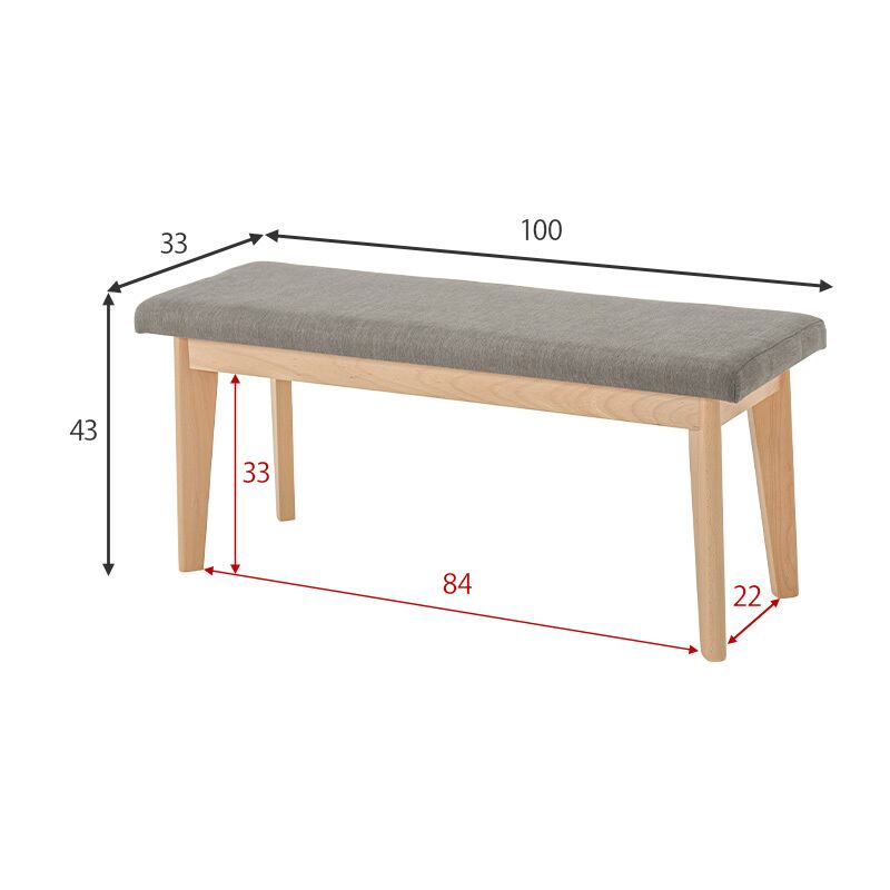 ベンチ:(約)幅100×奥行33×高さ43×座面高43cm