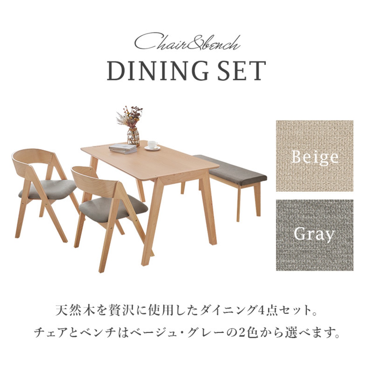 ダイニング4点セット 幅120 ダイニングテーブル ダイニングチェア ダイニングベンチ ダイニングセット 天然木 ナチュラル 新生活 模様替え